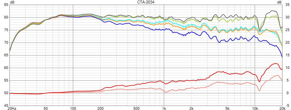 Internal hiss/noise inaudible at >30cm / 1 ft. - Max SPL@1m (CTA-2034-A weighted pink noise):