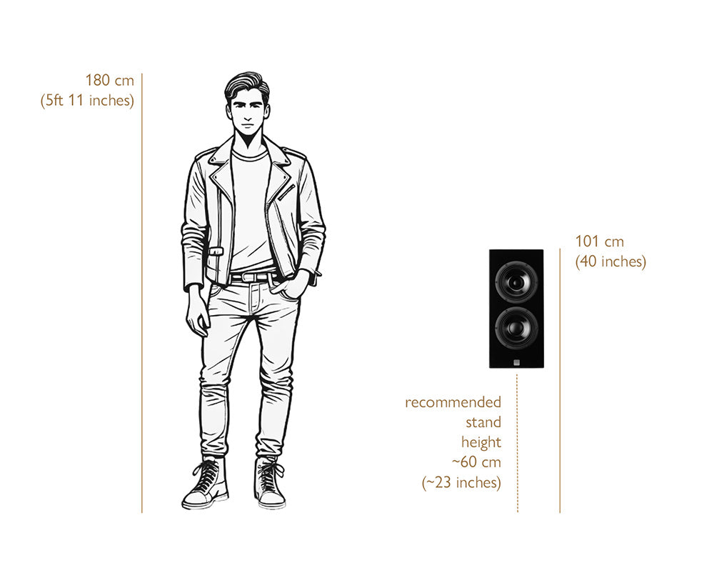Stands are not included with your purchase of SBS.1, but with their neutral design, many aftermarket stands will work well. Recommended stand height: 60-70 cm (23-28 inches). Tweeter should be at or slightly above ear height (not below).